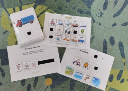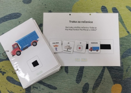 Ovaj paket sadrži 13 stranica materijala. Slikovni materijali pripremljeni su za svako vozilo te predložak za opisivanje. Pia Mia i Tonko nalaze se u ili na nekim vozilima. Djetetov zadatak jest ili imenovati vozilo/prostorni odnos te složiti odgovarajuću rečenicu sukladno imenovanom ili jednostavno uparivati predložak sa slikama vozila.