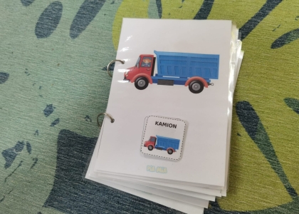 Adaptirana knjiga najčešće je osmišljena u obliku plastificiranog sadržaja s čičak trakama kako bi se aktivnost mogla ponoviti nekoliko puta. Ova adaptirana knjiga bavi se temom vozila, a djeca će korištenjem ove knjige: